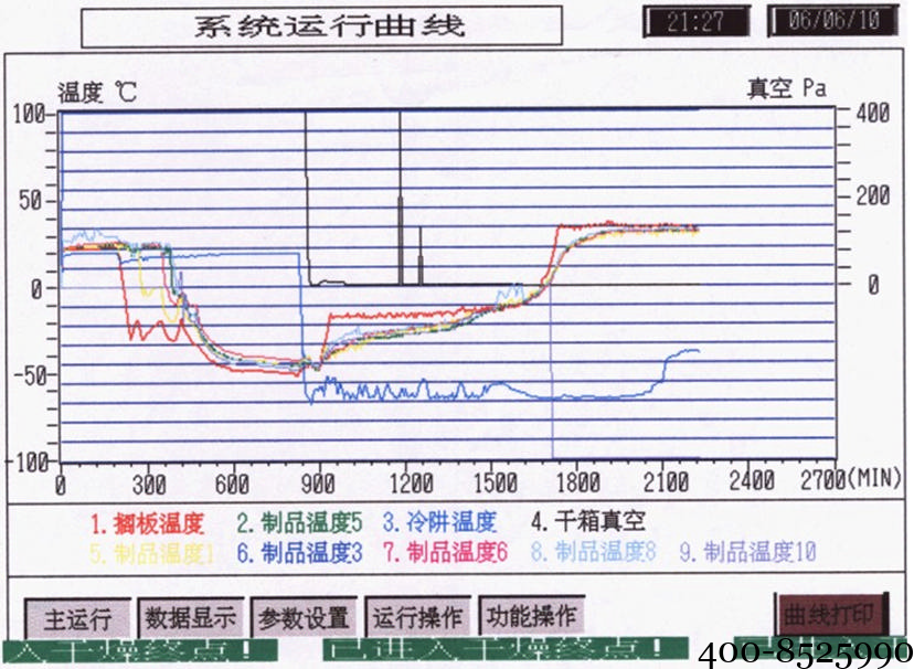 造成真空性能不良的原因主要有真空系統泄露量過大,真空泵性能變差,冷阱制冷能力下降、化霜不徹底和升華加熱量過大等。真空系統內有泄露,箱內不凝性氣體增多,增大箱內全壓,同時阻礙水蒸氣在冷阱中表面凝結,進一步提高蒸發器的壓真空系統內有泄露,箱內不凝性氣體增多,增大箱內全壓,同時阻礙水蒸氣在冷阱中表面凝結,進一步提高蒸發器的壓力。