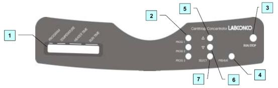 CentriVap?離心濃縮儀的控制面板如下如示,并有詳細說明。